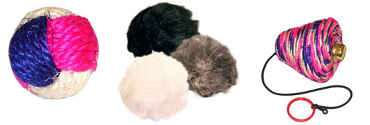 из натуральных материалов, пластиковые шарики, мячики.